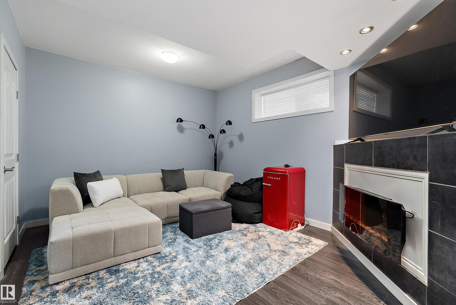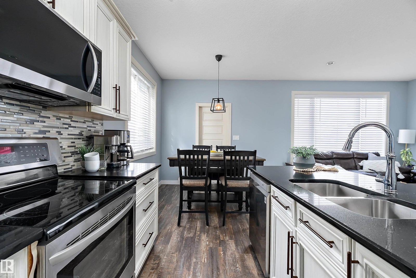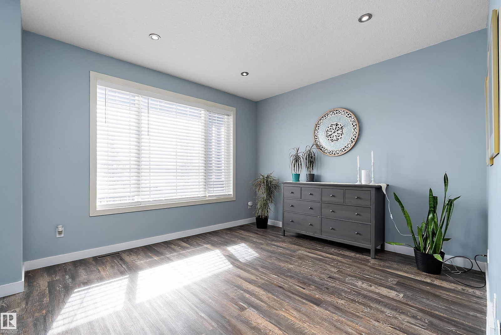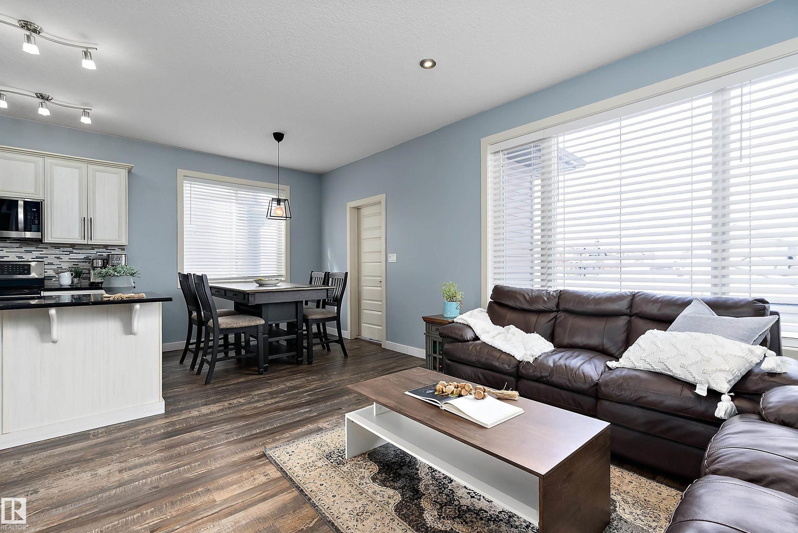 Fully finished 5 bedroom, 3.5 bath home across from greenspace. Bright & spacious home that offers everything a growing family could need. The main floor features 9 ft ceilings, & a welcoming entry that opens to a versatile flex room. The kitchen is well designed w/ quartz countertops, a large island, corner pantry, & overlooks the living room with a cozy gas fireplace. A generous dining nook provides plenty of space for family meals or entertaining. The main floor is completed w/ separate laundry room with door for added privacy. Upstairs you will find 3 large bedrooms including the primary suite w/a full ensuite & spacious closet. 2 additional bedrooms & another full bathroom complete the upper level. The fully finished basement offers 2 more large bedrooms, a flex room, & additional bathroom. Top it all off with A/C! Outside you will find a large backyard, double detached heated garage.Close to shopping, schools, playgrounds, and walking paths w/ easy access to all the amenities Leduc has to offer.