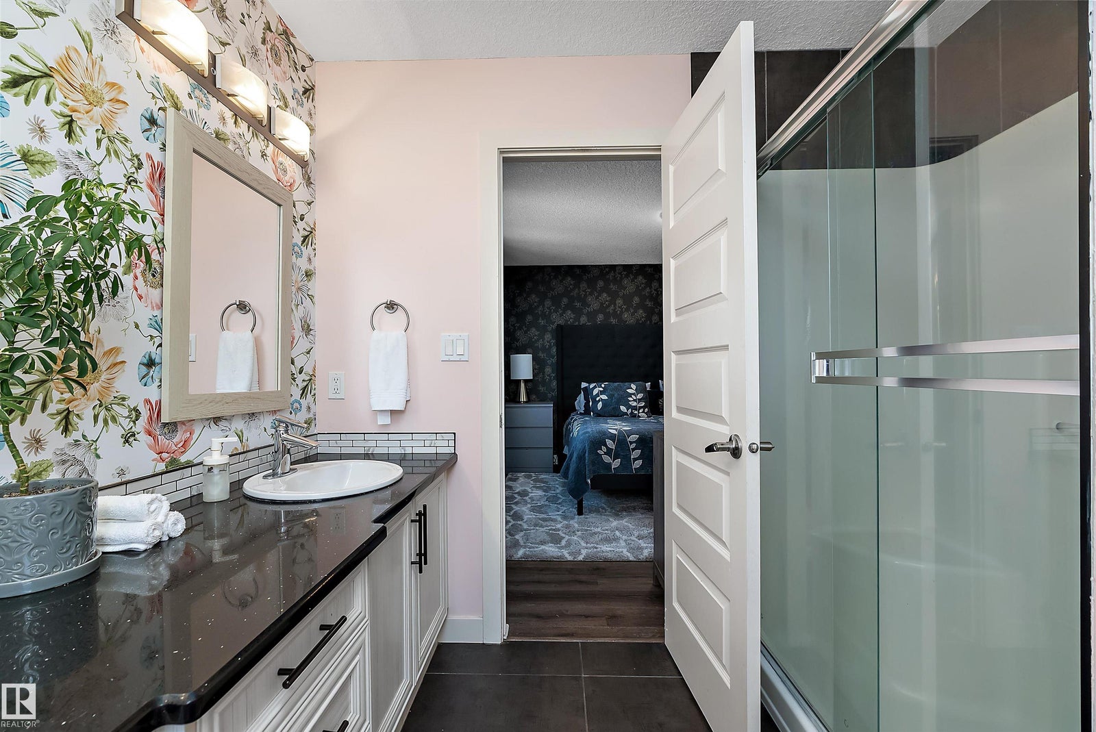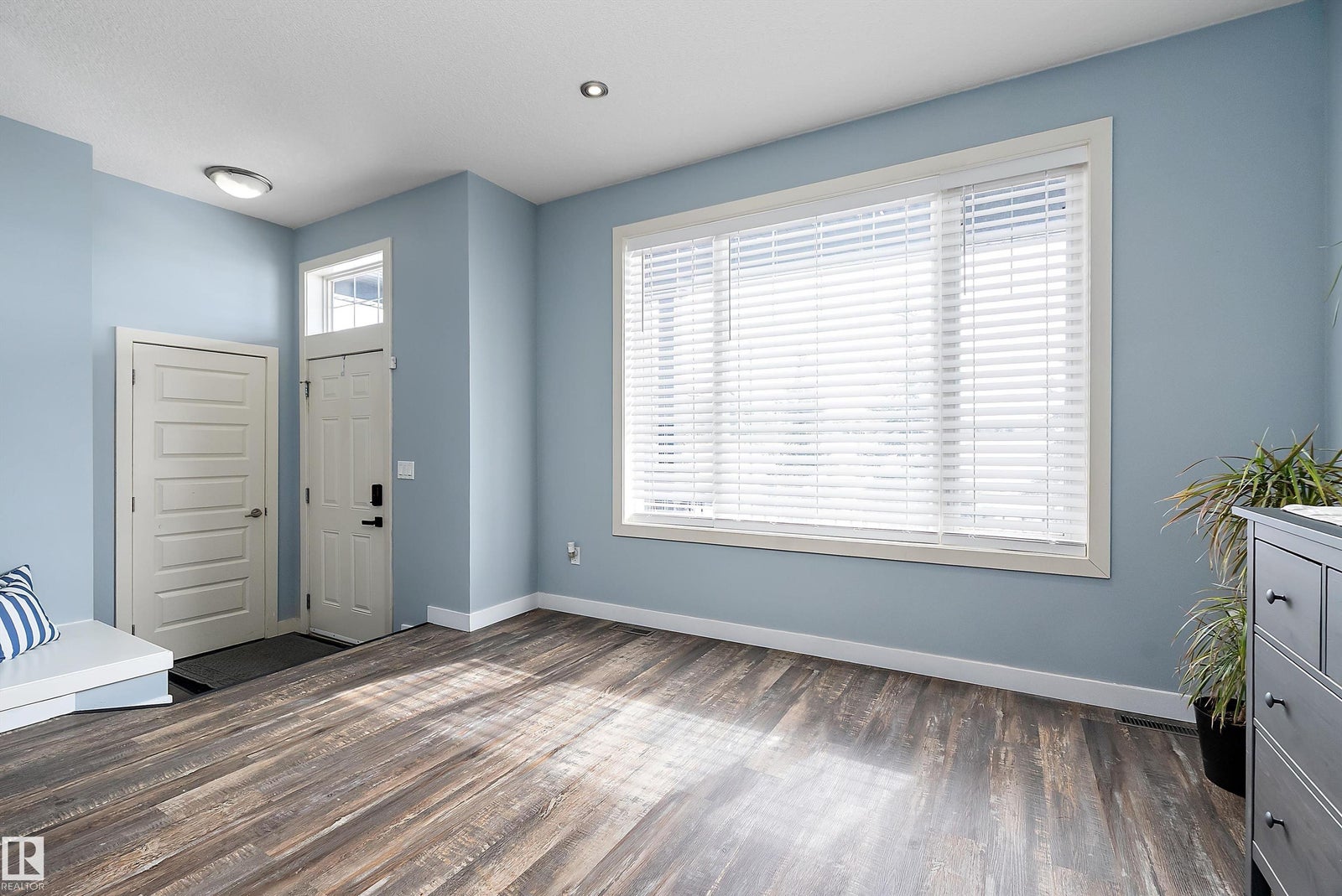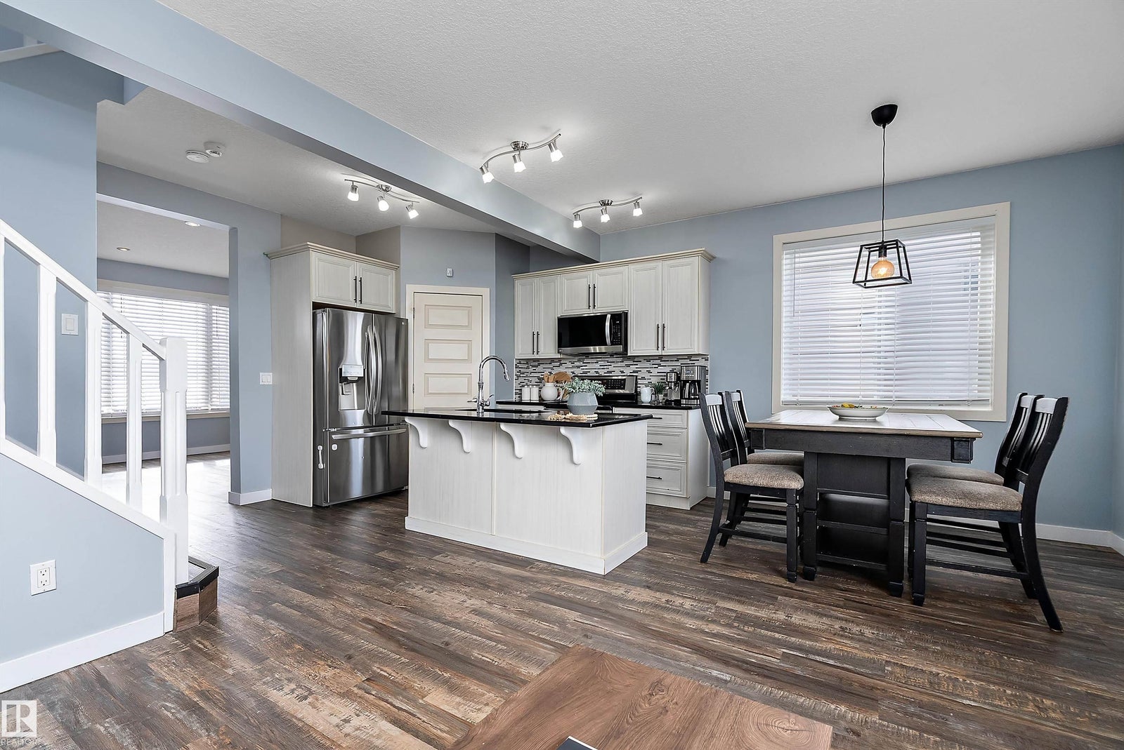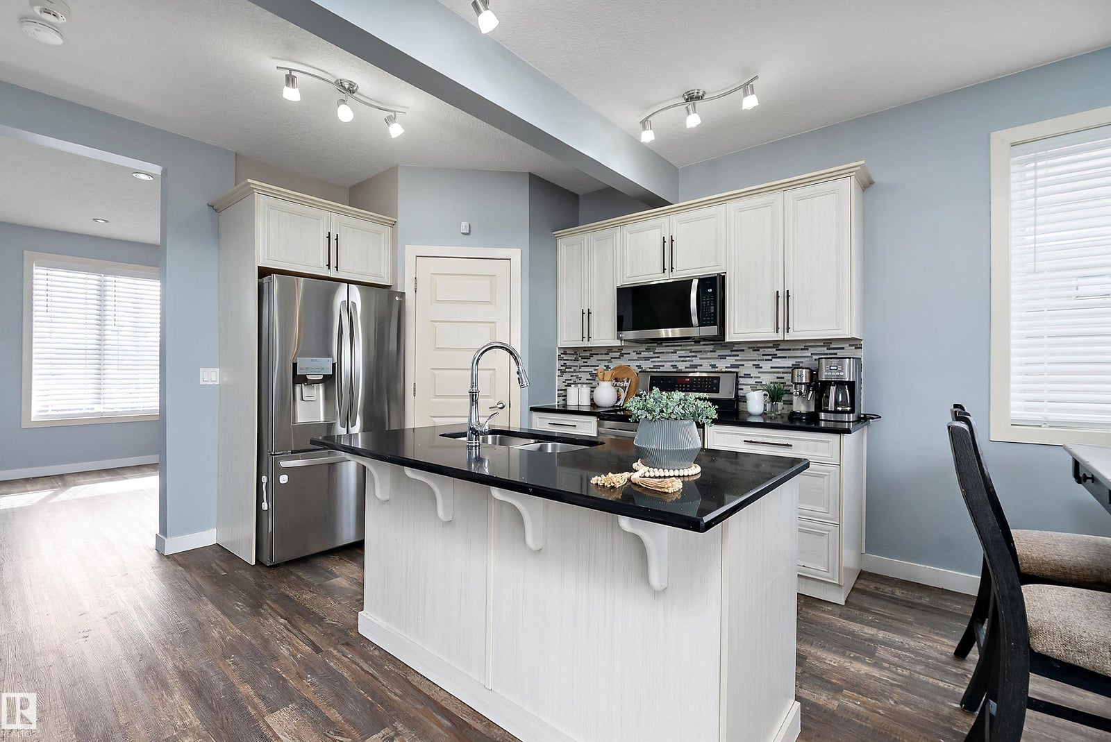 Fully finished 5 bedroom, 3.5 bath home across from greenspace. Bright & spacious home that offers everything a growing family could need. The main floor features 9 ft ceilings, & a welcoming entry that opens to a versatile flex room. The kitchen is well designed w/ quartz countertops, a large island, corner pantry, & overlooks the living room with a cozy gas fireplace. A generous dining nook provides plenty of space for family meals or entertaining. The main floor is completed w/ separate laundry room with door for added privacy. Upstairs you will find 3 large bedrooms including the primary suite w/a full ensuite & spacious closet. 2 additional bedrooms & another full bathroom complete the upper level. The fully finished basement offers 2 more large bedrooms, a flex room, & additional bathroom. Top it all off with A/C! Outside you will find a large backyard, double detached heated garage.Close to shopping, schools, playgrounds, and walking paths w/ easy access to all the amenities Leduc has to offer.